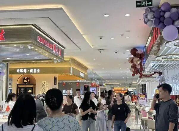 临近午时,团城山万达广场人气爆棚,场外国产新能源与合资品牌新车熠熠生辉,场内商超、影院、餐饮区客流涌动,消费热情持续攀升。