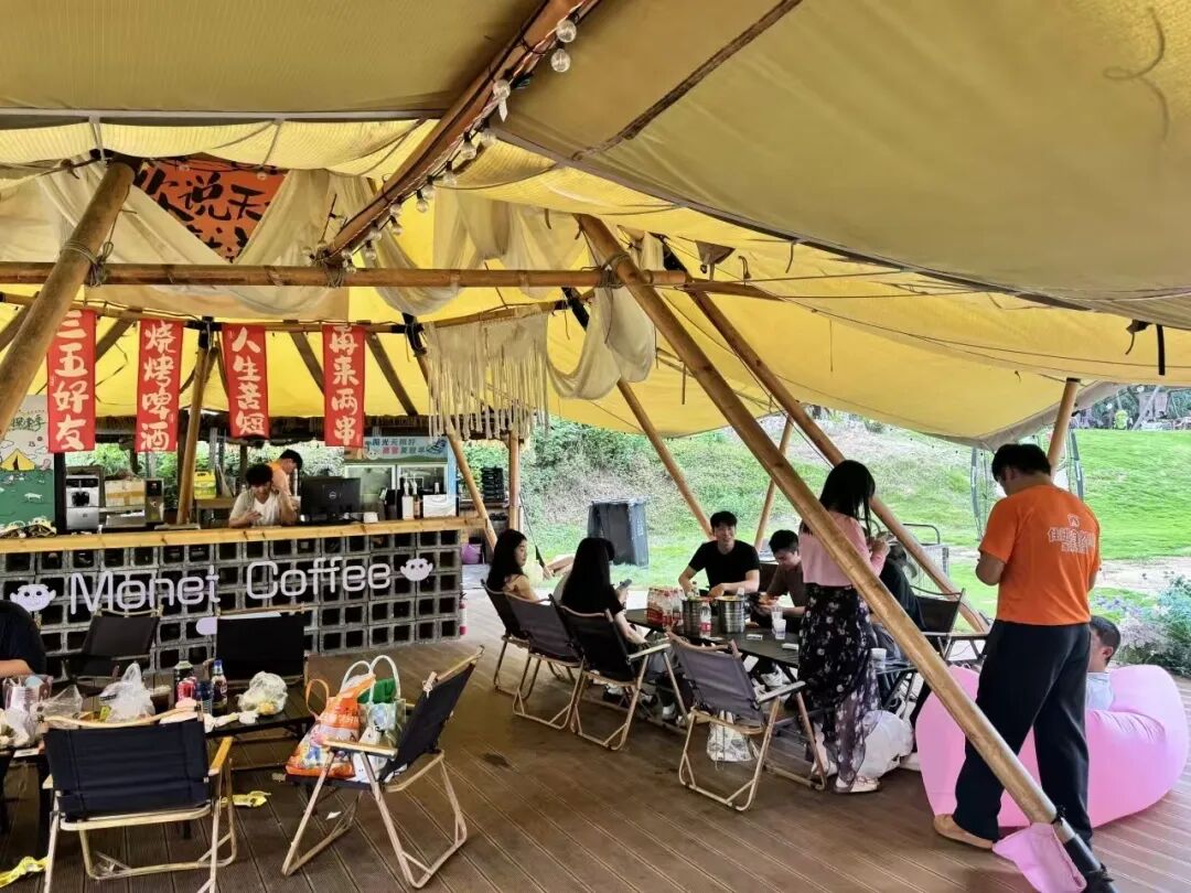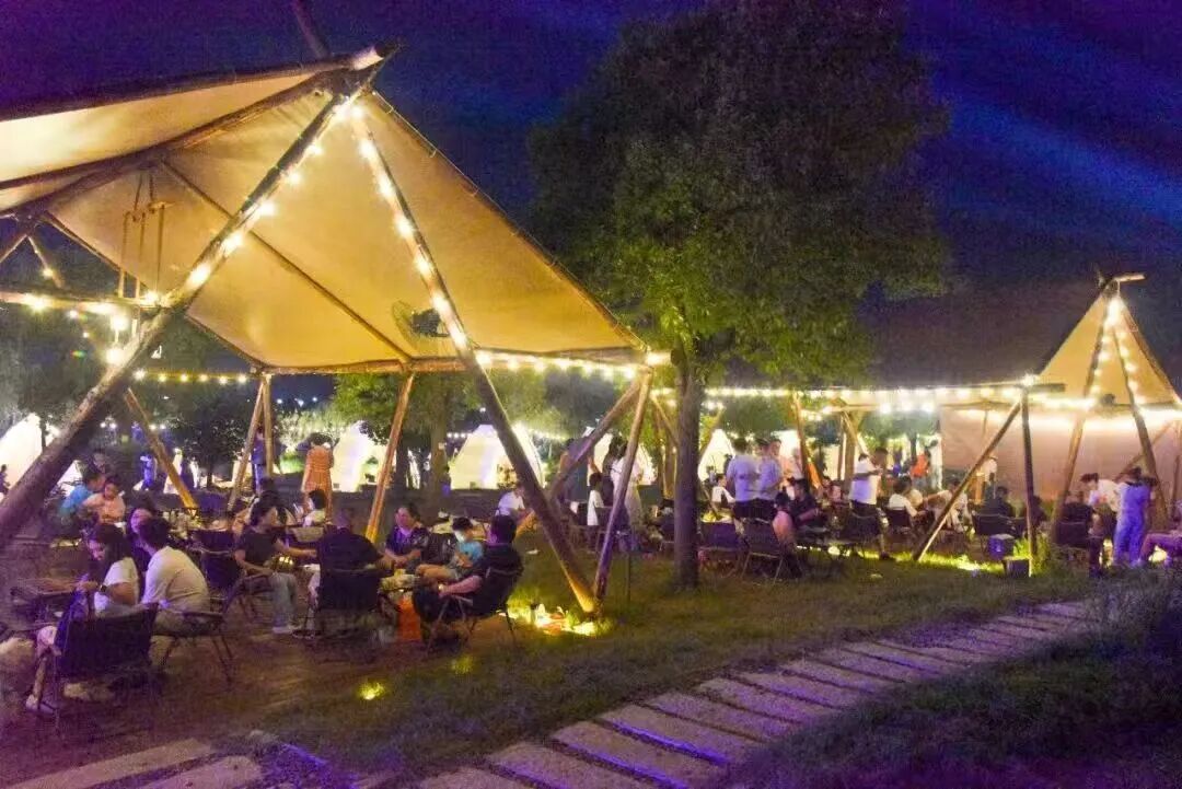 傍晚,乐队登台,一首首流行摇滚瞬间点燃全场,观众挥舞手机闪光灯,数百人开启 “集体 KTV”,素不相识的人们因音乐相连,笑容在夜色中绽放。孩子们围着篝火追跑,大人们就着晚风聊天,帐篷外虫鸣伴笑语,成了假日里最温柔的记忆。