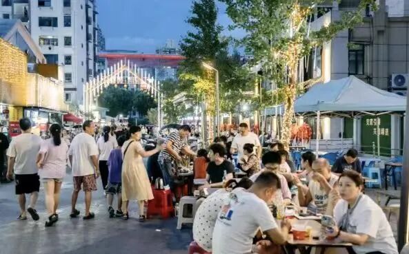 入夜后,王家湾烧烤美食街接过 “消费接力棒”。各家烧烤店满座,孜然与辣椒的香气弥漫整条街,商户延长营业时间并推出 “国庆特惠套餐”。食客们围坐一堂,品美食、畅欢谈,在烟火气中尽享假日休闲。
