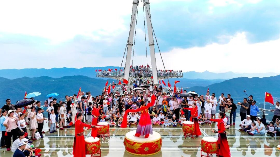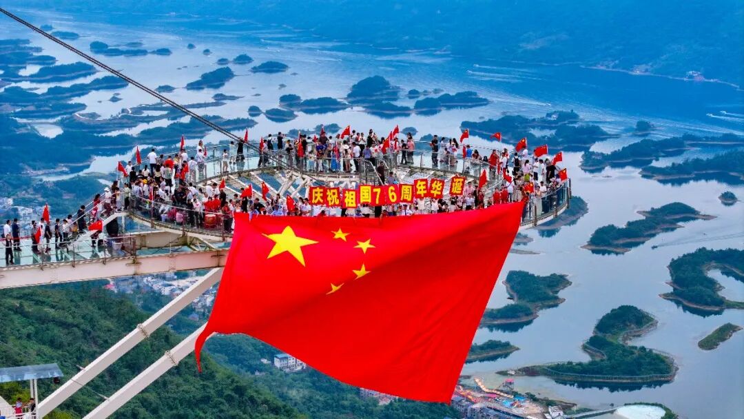 节日氛围的营造从多元主题活动中徐徐展开。10月1日,阳新县仙岛湖游人如织。游客登上天空之镜观景平台打卡拍照,来自各地的游客大合唱,乐享假日美好时光。