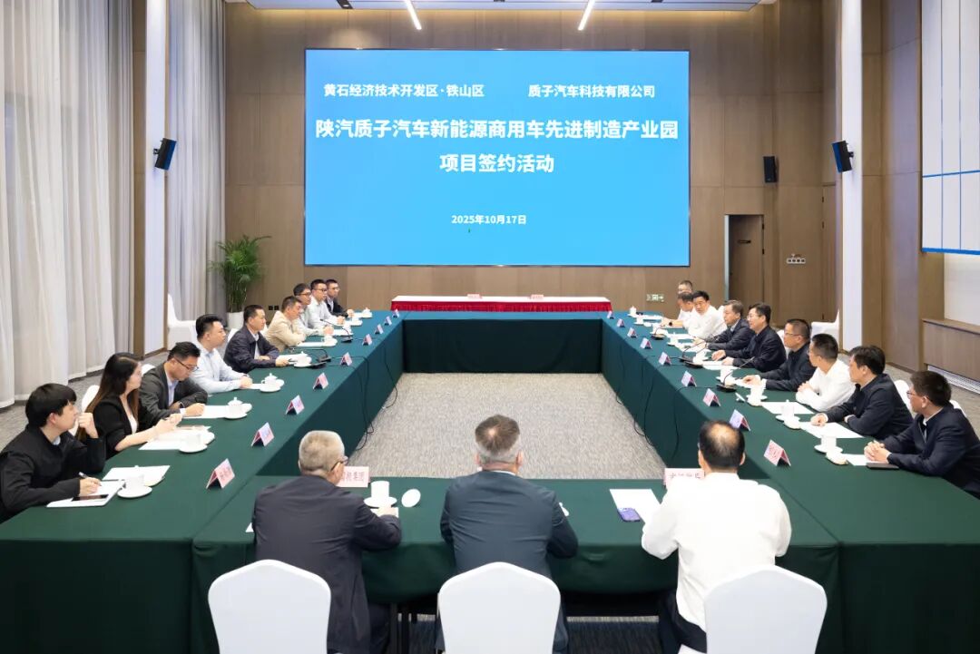 郄英才代表黄石市委、市政府对陕汽控股集团、质子汽车一行的到来表示热烈欢迎。他说,陕汽质子汽车新能源商用车先进制造产业园项目的签约,源自双方深厚的工业渊源、产业的高度匹配和契合的战略布局,是黄石与陕汽的一场“双向奔赴”。我们真诚希望以该项目为“引爆点”,进一步深化创新合作、拓展多领域协同,推动双方合作向更大范围、更宽领域、更深层次发展。黄石将把该项目作为全市招商引资和项目建设的重点工程,坚决兑现政府承诺事项,组建最强专班、集成最优资源、营造最佳环境,确保项目高效推进、早见成效,推动双方合作结出更加丰硕的成果。