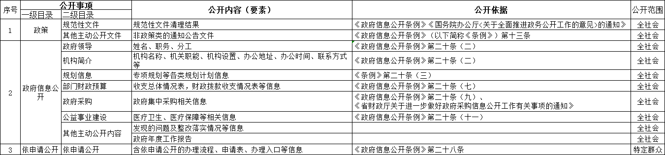 政府信息主动公开事项目录