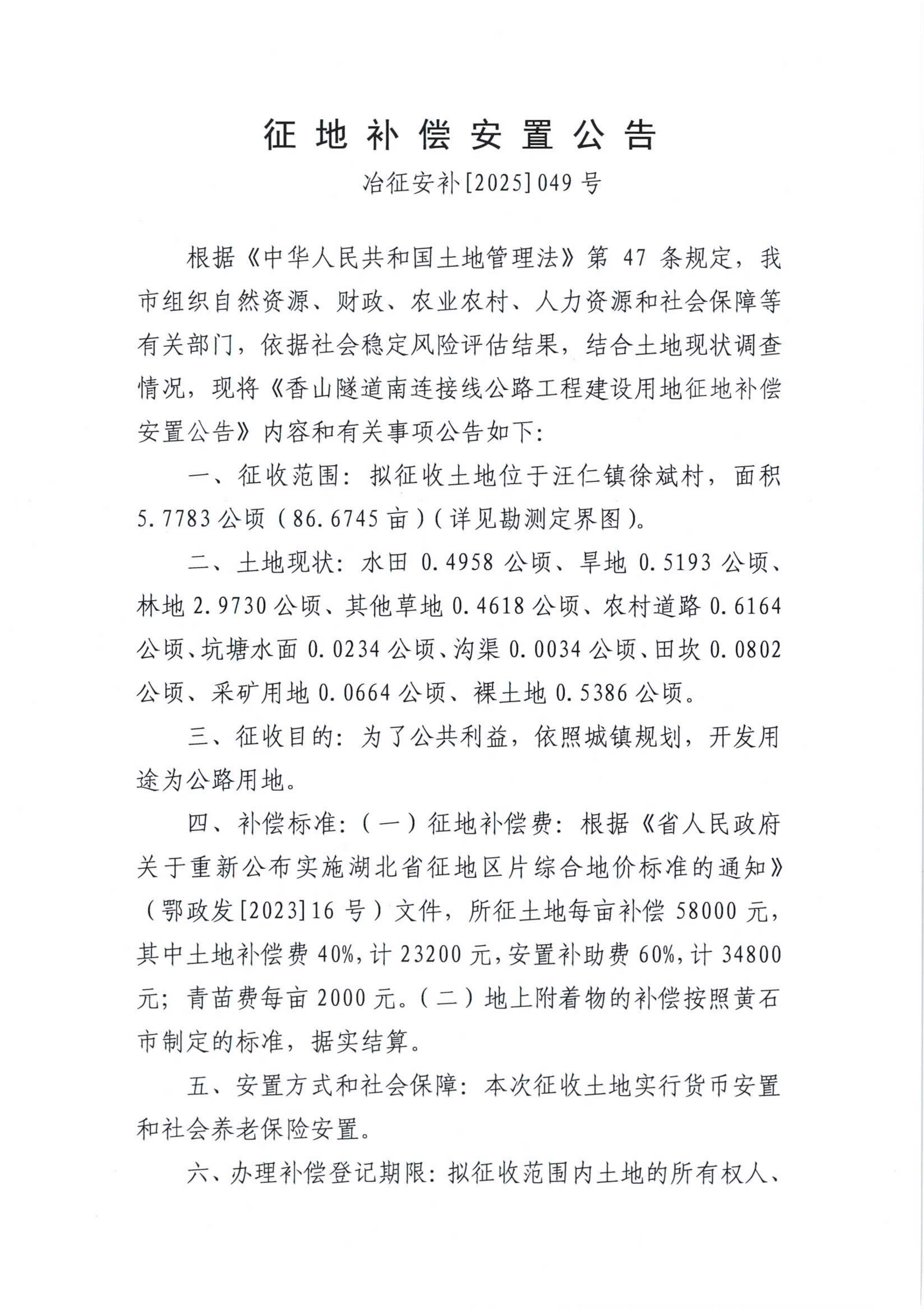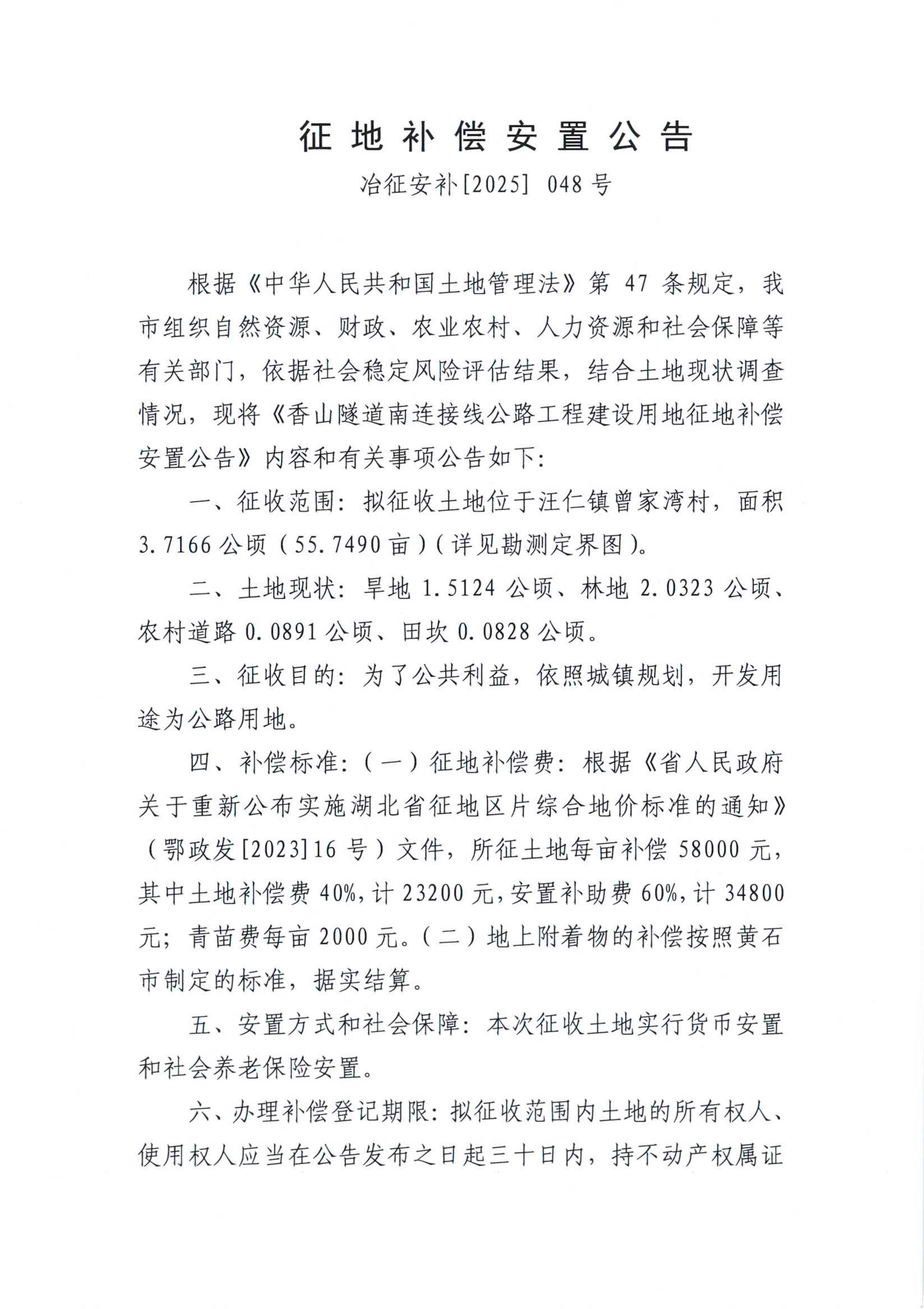 征地补偿安置公告——冶征安补[2025]048、049号