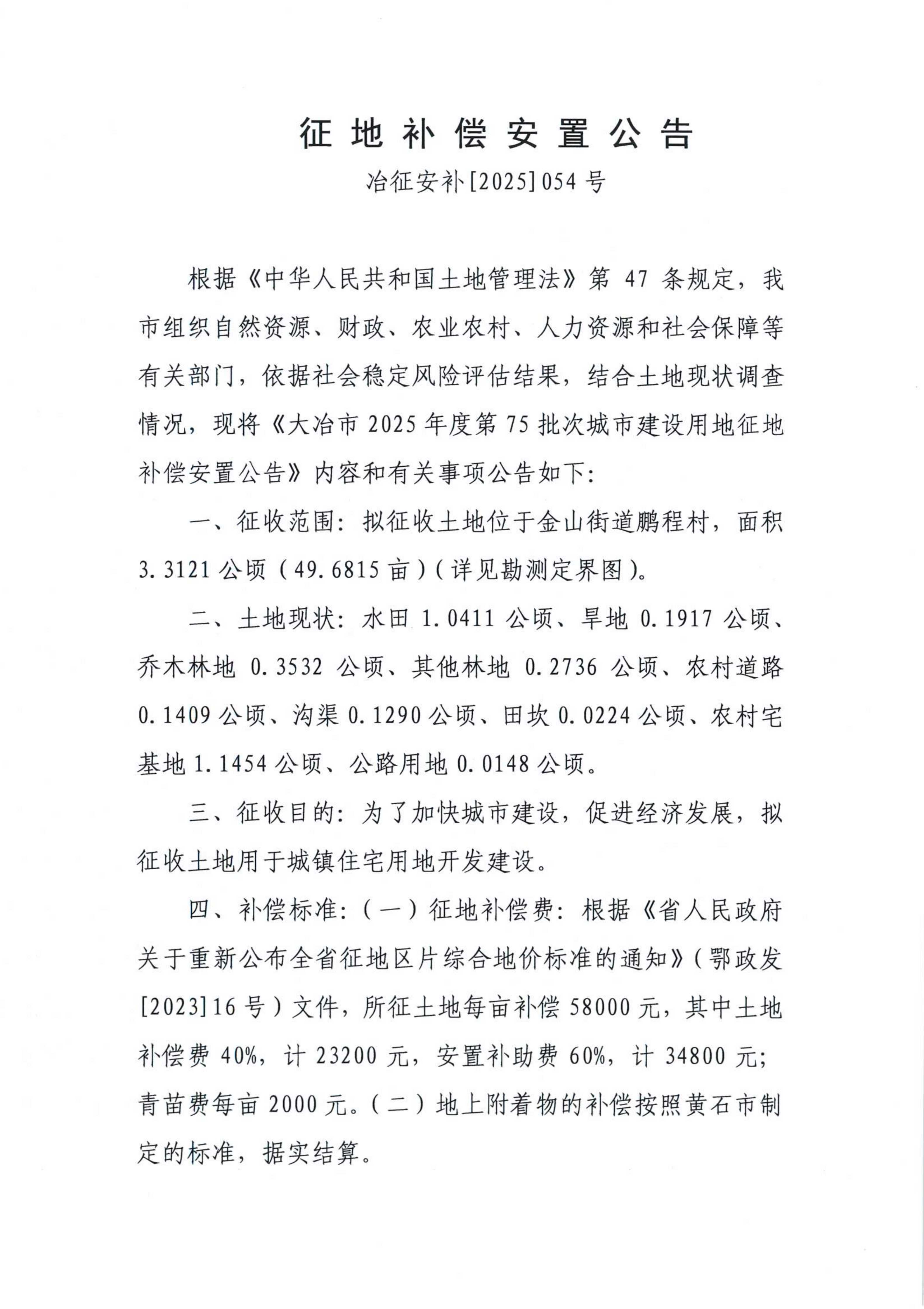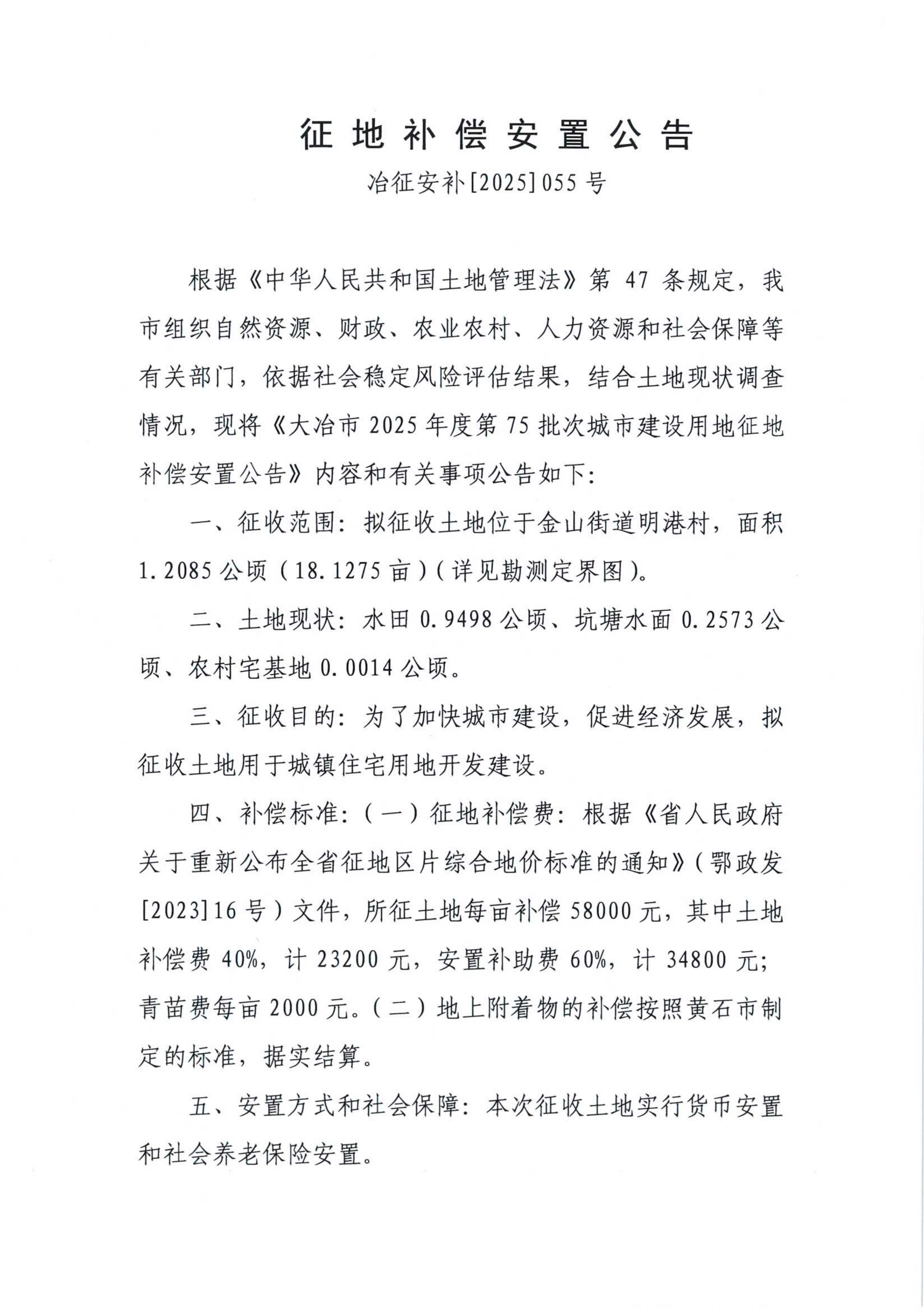 征地补偿安置公告——冶征安补[2025]054、055号
