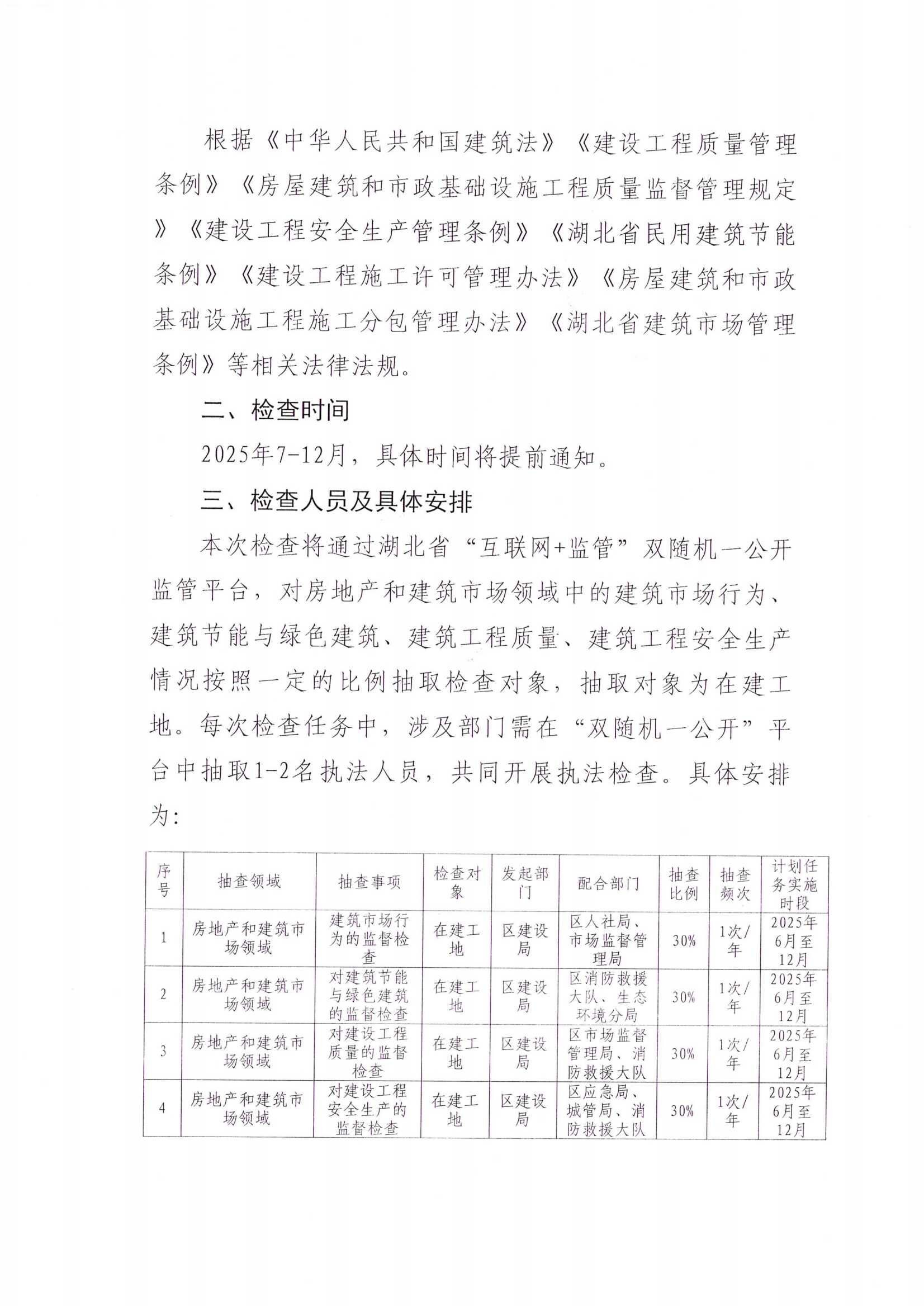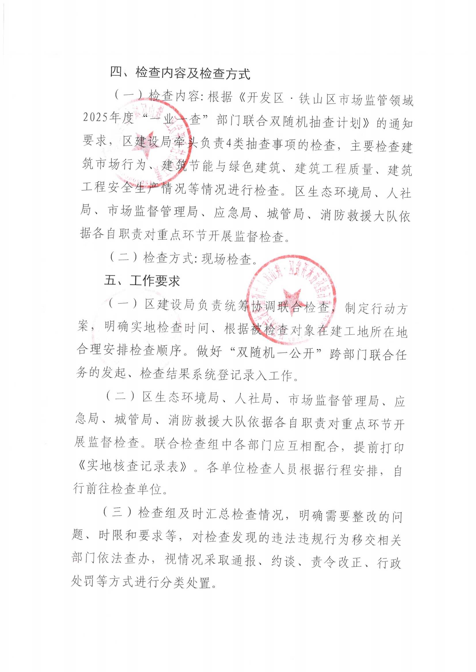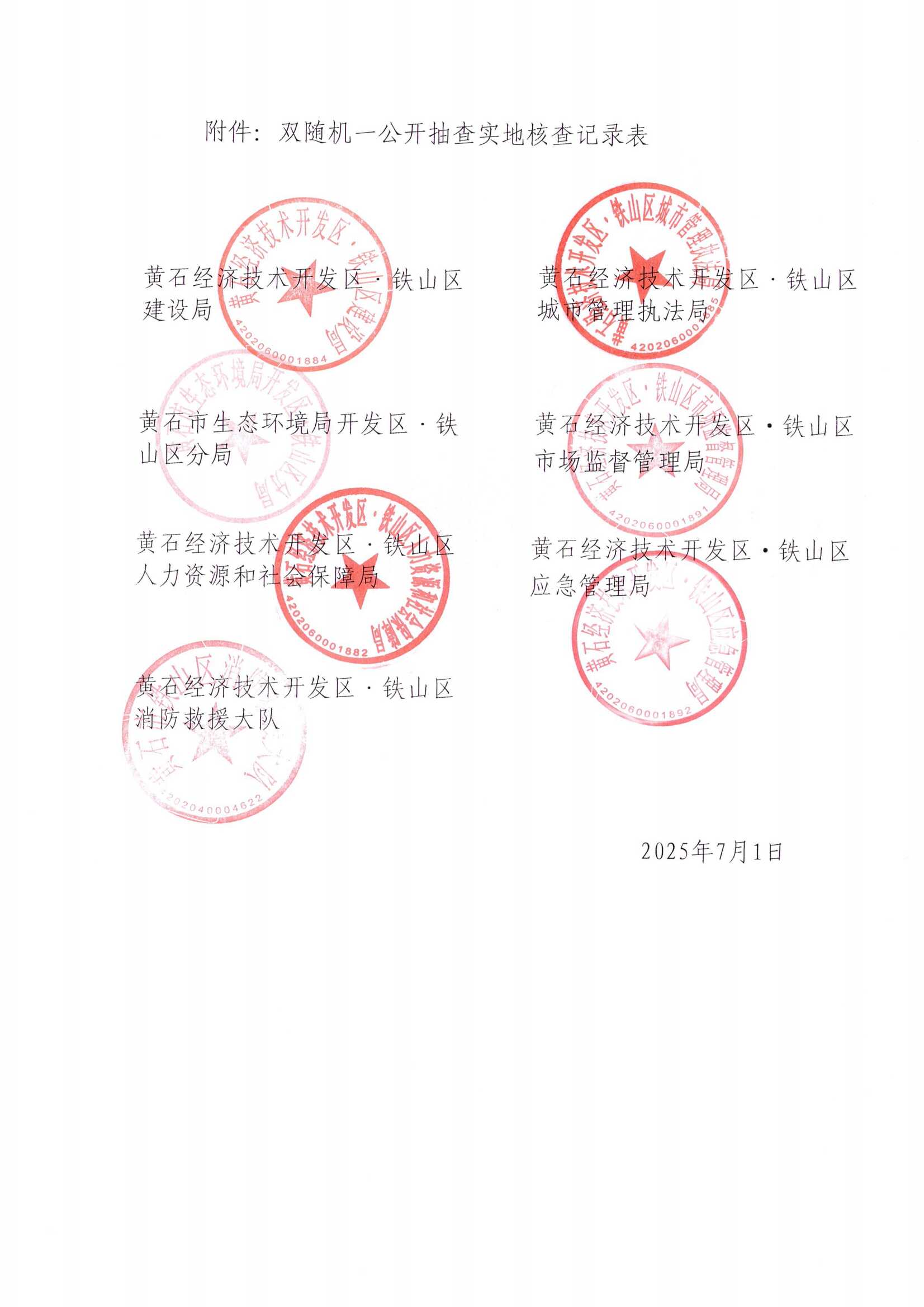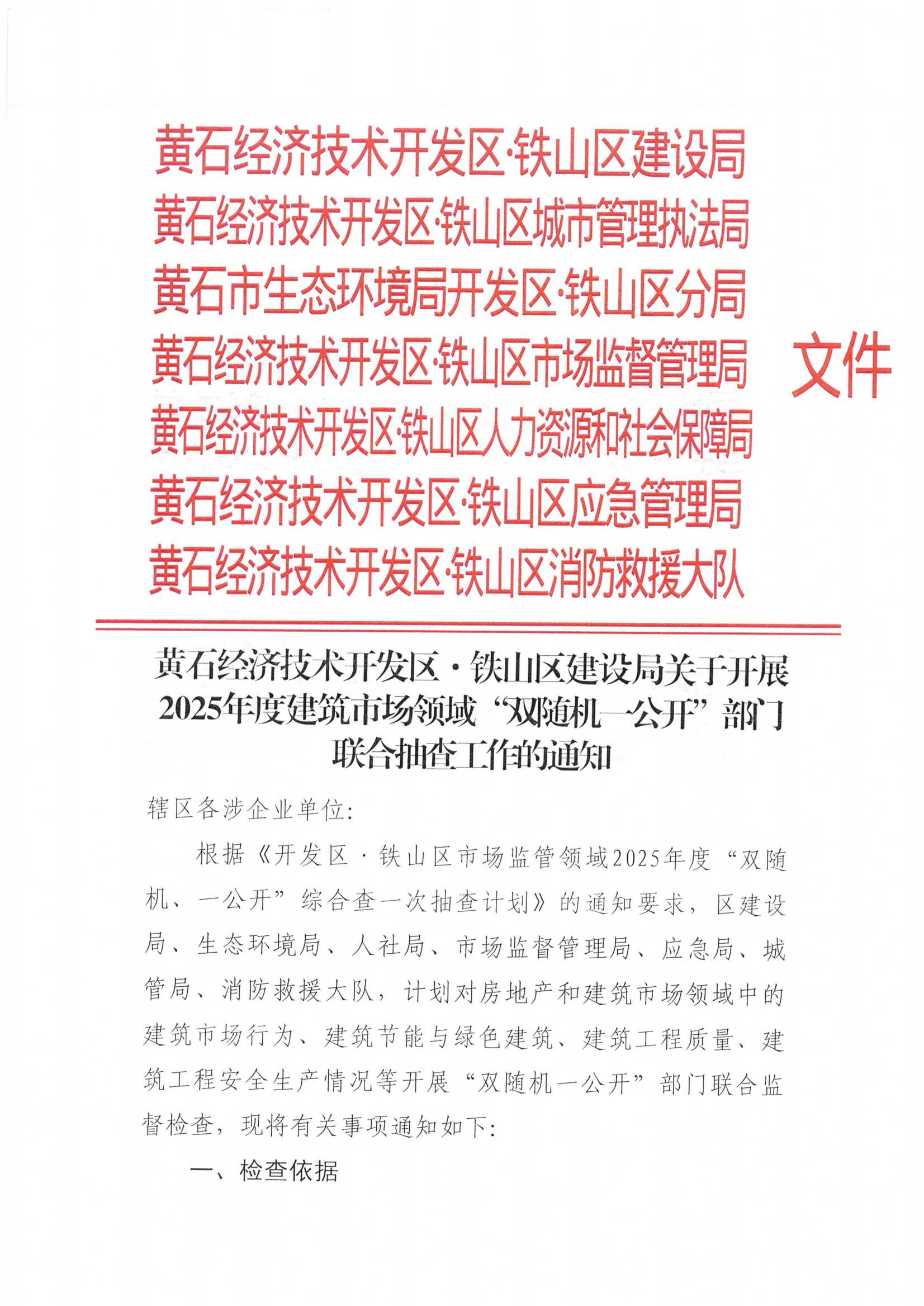 黄石经济技术开发区·铁山区建设局关于开展2025年度建筑市场领域“双随机、一公开”部门联合抽查工作的通知