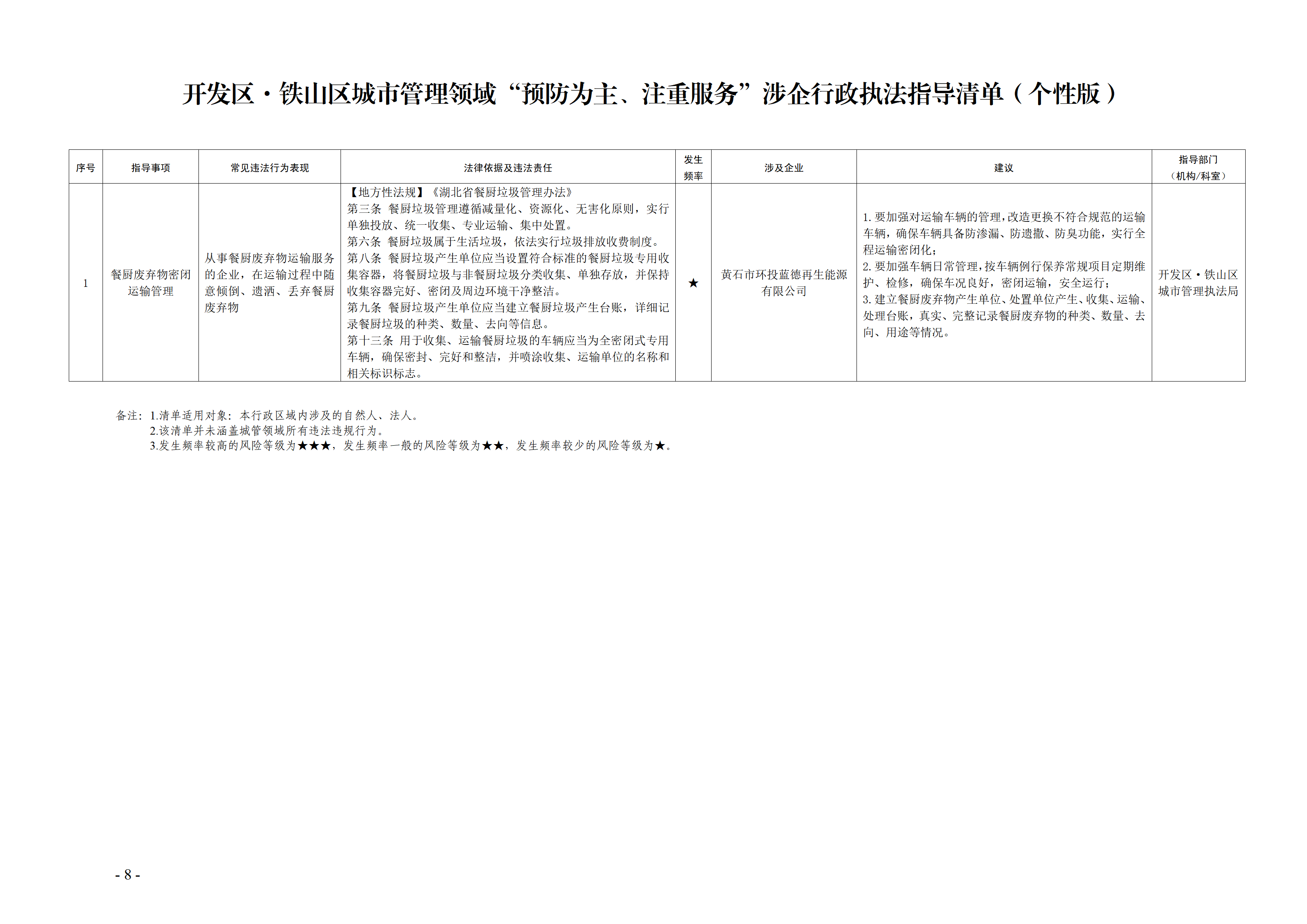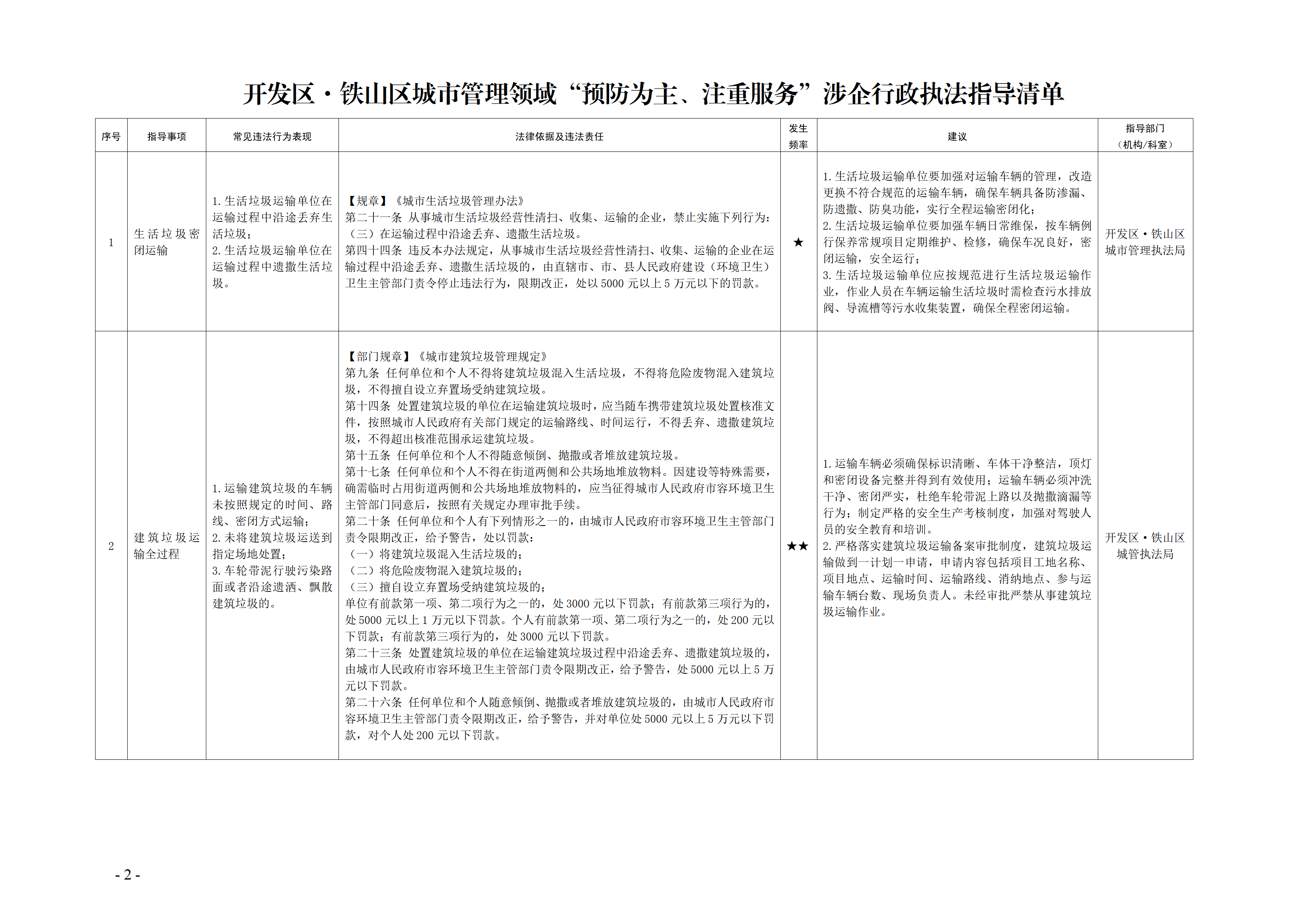 为加快推进政府职能转变,全面推进严格规范公正文明执法,持续优化法治化营商环境,我局结合工作实际,制定《开发区·铁山区城市管理领域“预防为主、注重服务”涉企行政执法指导清单》,现印发给你们,请认真贯彻执行。