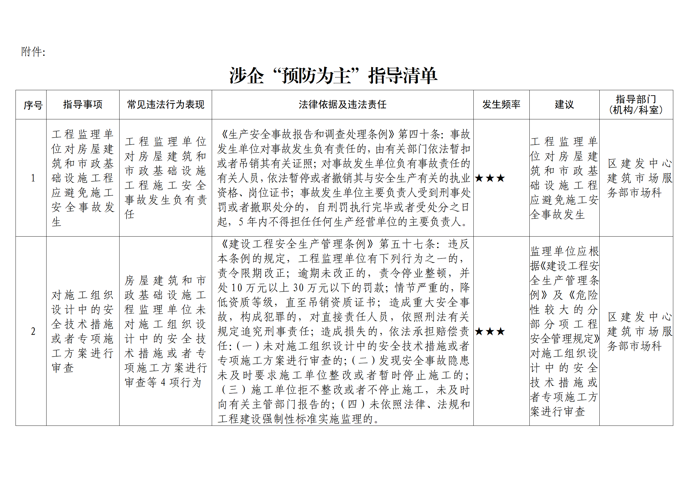 为进一步优化涉企执法行为,持续优化法治化营商环境,我局特编制了《涉企“预防为主”指导清单》,现印发给你们,请根据职责分工按清单内容对企业做好指导服务工作,为企业发展提供良好法治保障。