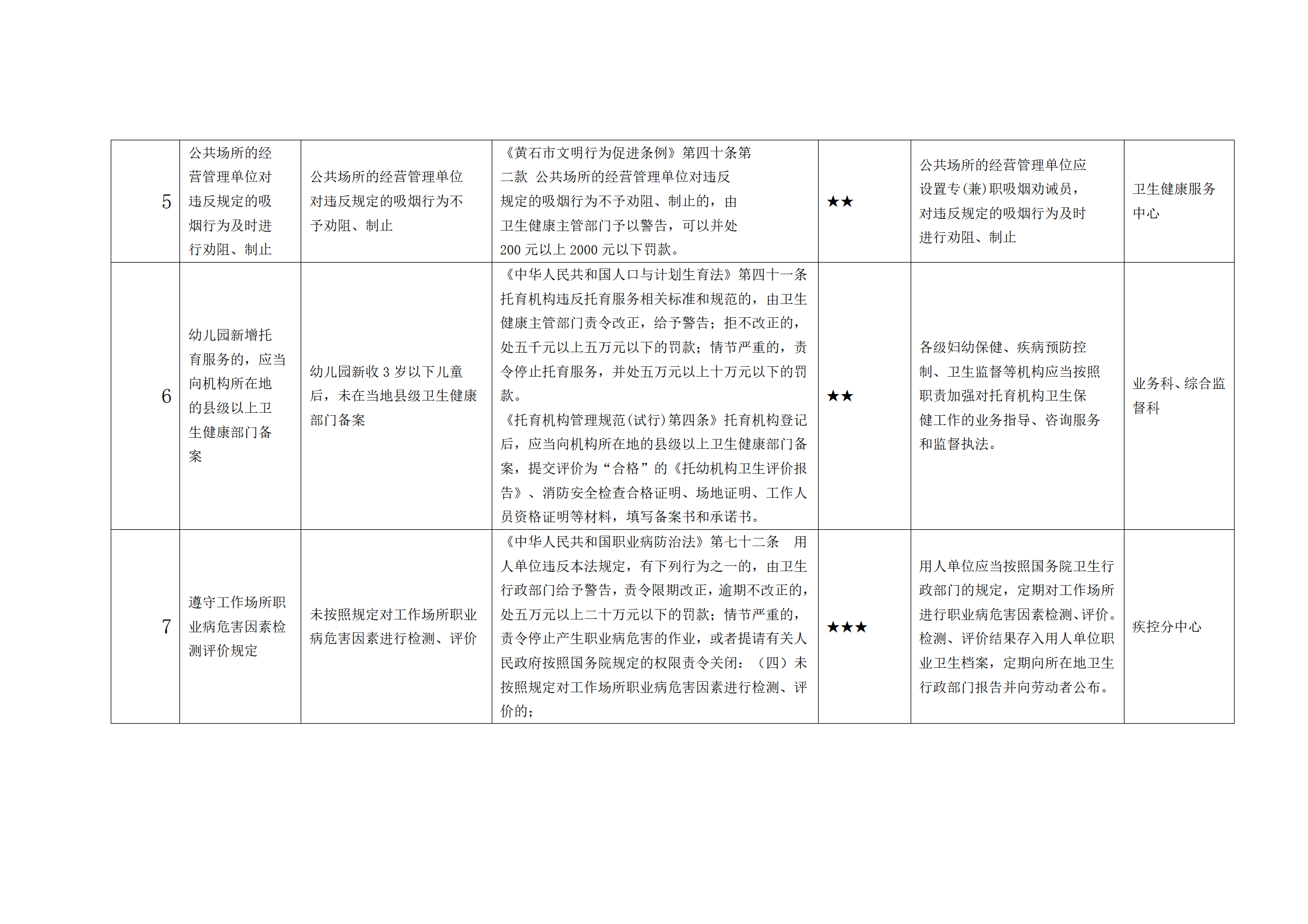 为加快推进政府职能转变,持续优化法治化营商环境,根据市卫健委发布关于《黄石市卫生健康领域“预防为主”指导清单》的通知及区司法局《开发区·铁山区关于落实“预防为主、注重服务”涉企行为执法模式的实施方案》要求,针对卫生健康领域研究制定《开发区·铁山区内的高频违法事项和常见违法行为,卫生健康领域“预防为主”指导清单》,请结合工作职能做好指导服务工作,为企业发展提供良好法治保障环境。