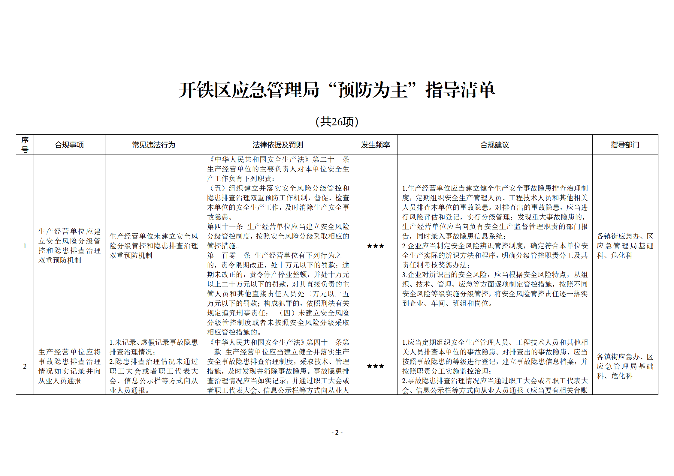 附件:开发区·铁山区安全生产领域“预防为主”指导清单