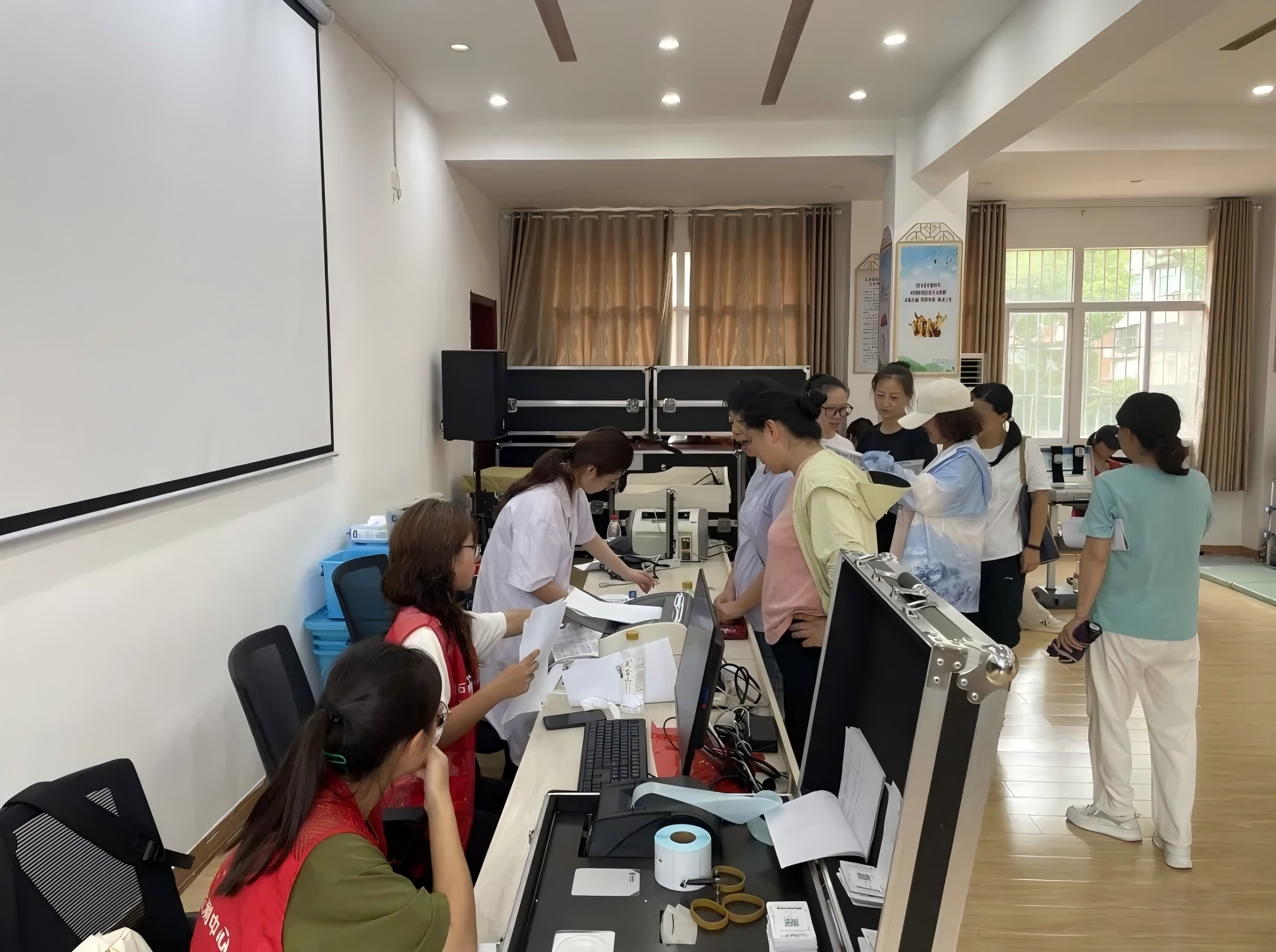 活动现场还配备了专业的运动健康指导团队。他们根据居民的体质测试结果,现场为居民开具个性化的健身运动处方。这些运动处方充分考虑了居民的年龄、性别、身体状况以及运动目标等因素,详细规划了运动项目、运动强度、运动频率和运动时间等内容。活动现场,工作人员认真记录每一位参与者的测验数据,还为他们提供了个性化的健身建议和指导。