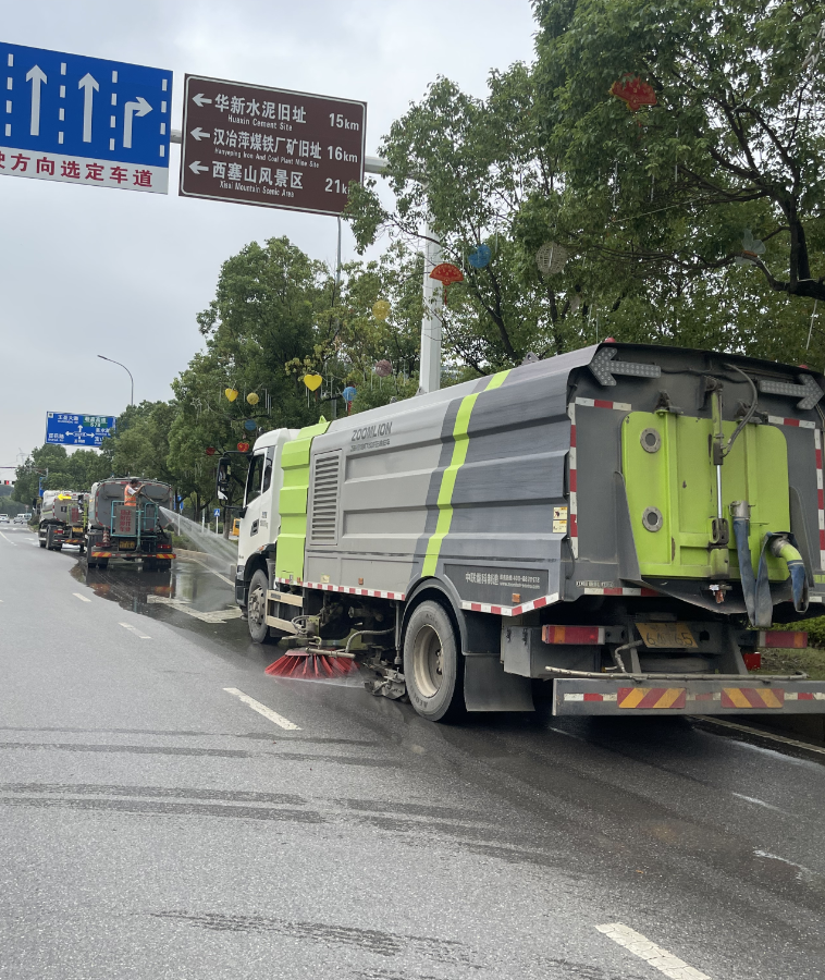结合气候变化,进一步优化“清扫+降尘”的作业模式,合理调配作业机械,增加道路冲洗和洒水降尘频次,延长保洁时间,降低道路积尘负荷。