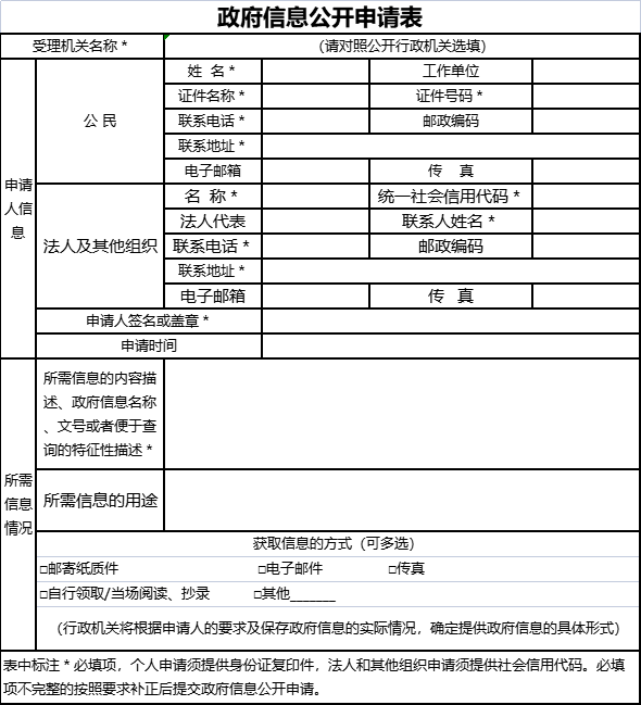 申请人向乐鱼网页版·铁山区政府申请公开政府信息,应填写《乐鱼网页版·铁山区政府信息公开公民申请表》(式样附后,以下简称《申请表》)。《申请表》可以到本机关受理地点领取,也可登陆乐鱼网页版·铁山区政府门户网站下载,《申请表》复制有效。申请人应准确填写姓名或者名称、身份证明、联系方式以及获取信息的方式、途径,以便回复。《申请表》中标注*为必填项,个人申请须提供身份证复印件,法人和其他组织申请须提供社会信用代码。必填项不完整的按照要求补正后提交政府信息公开申请。
