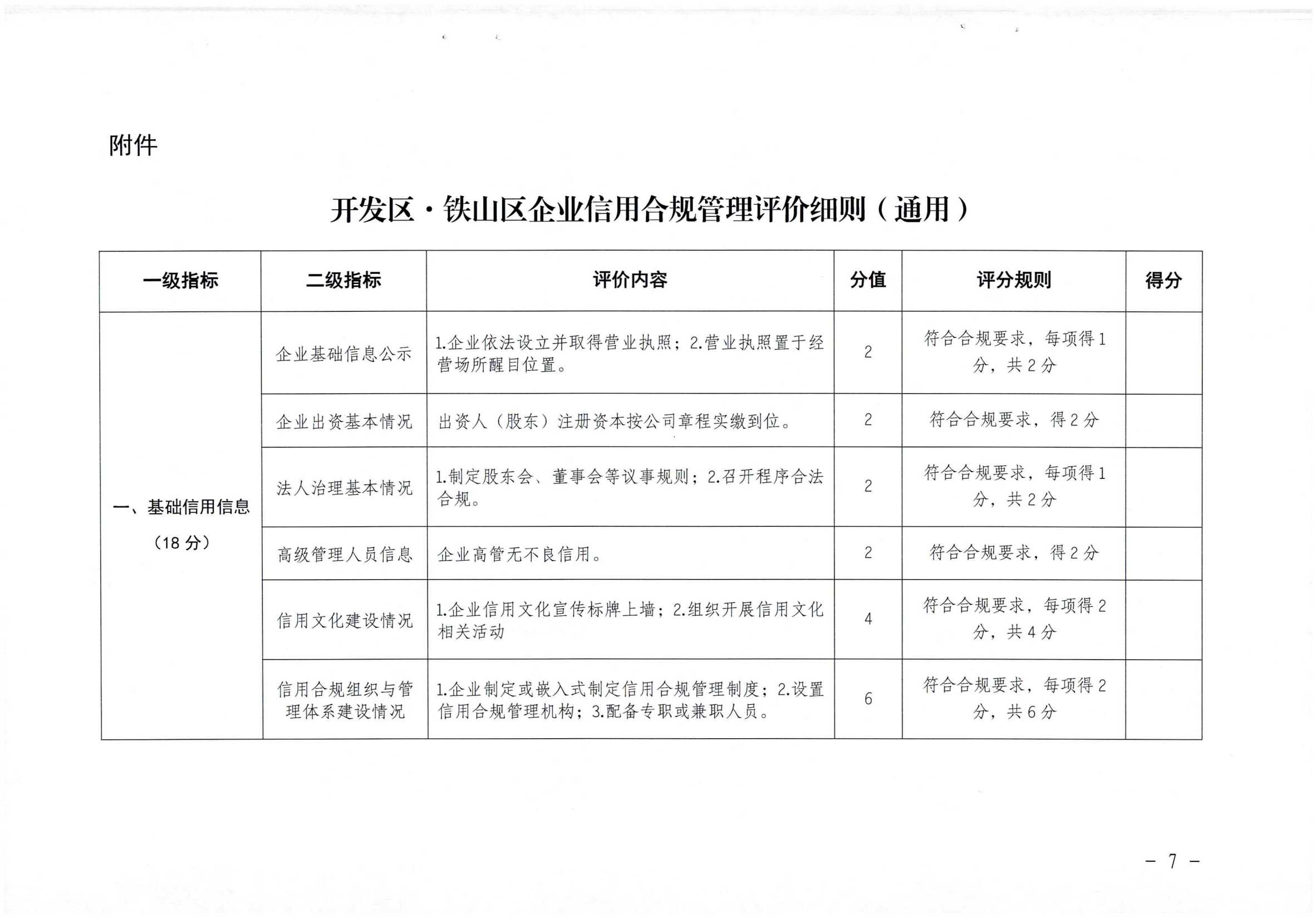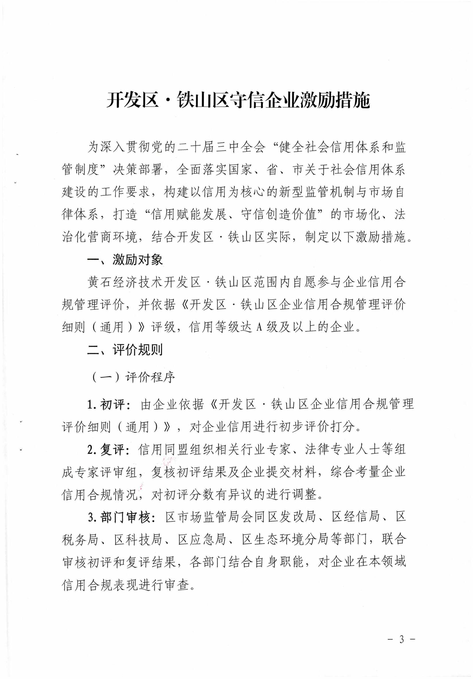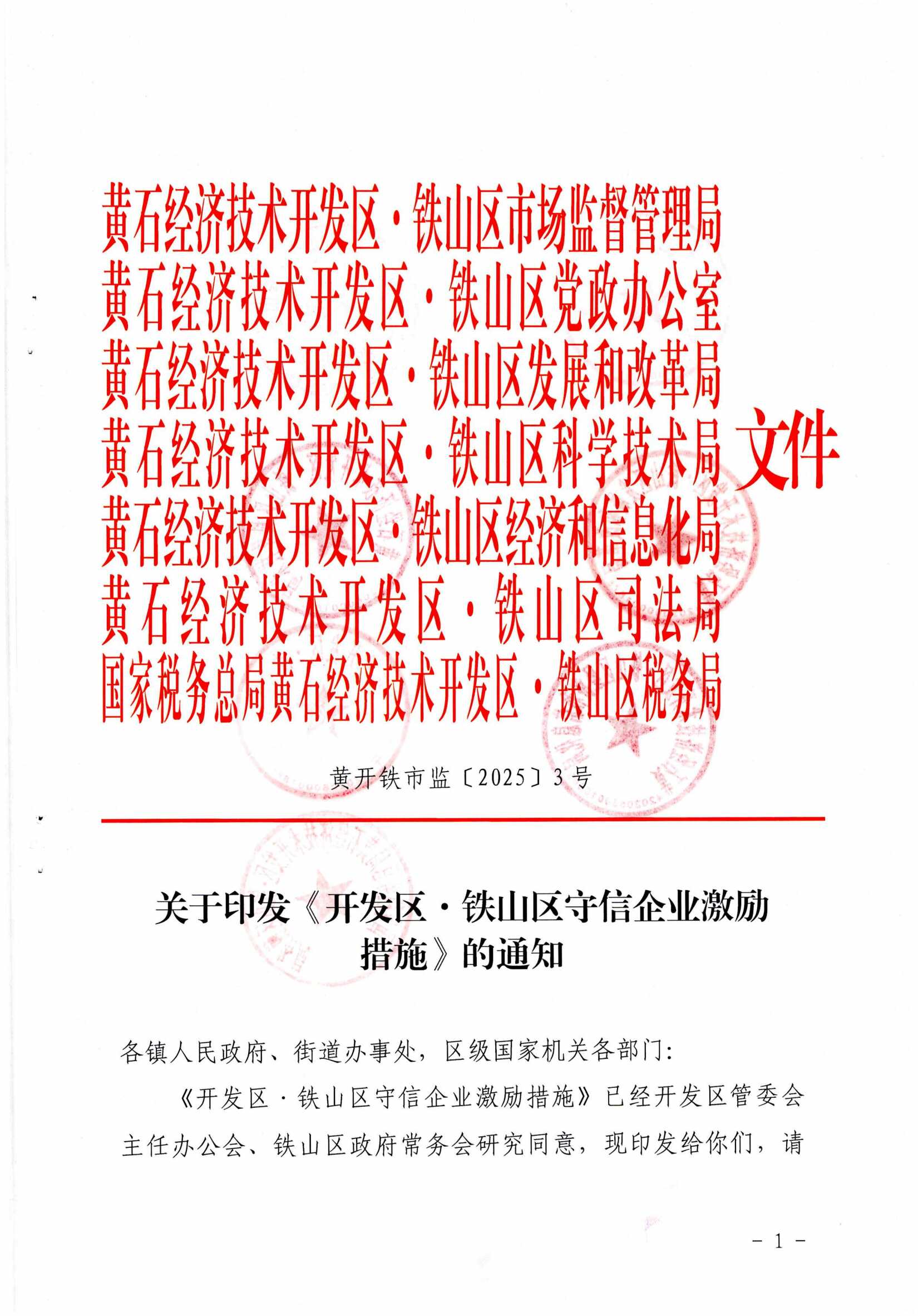 关于印发《开发区·铁山区守信企业激励措施》的通知